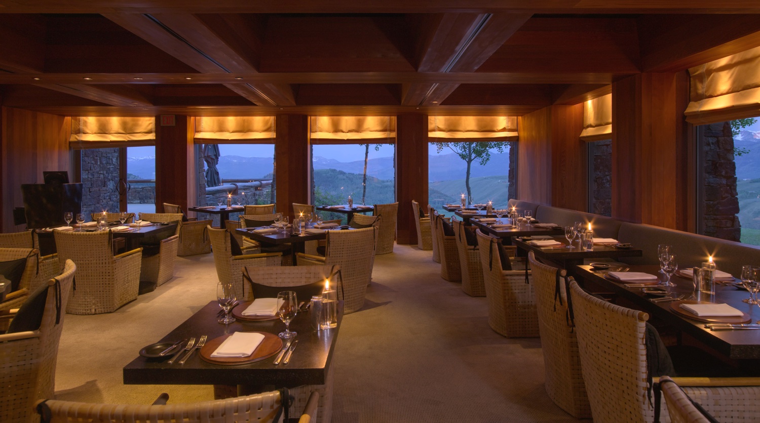 The Grill – Das Hauptrestaurant mit Redwood-Vertäfelungen, holzbefeuertem Kamin und atemberaubender Aussicht auf die Berge ist zum Frühstück, Mittag- und Abendessen geöffnet und spezialisiert auf Fleisch aus lokaler Produktion, nachhaltiges Ranchfleisch und frischen Fisch.