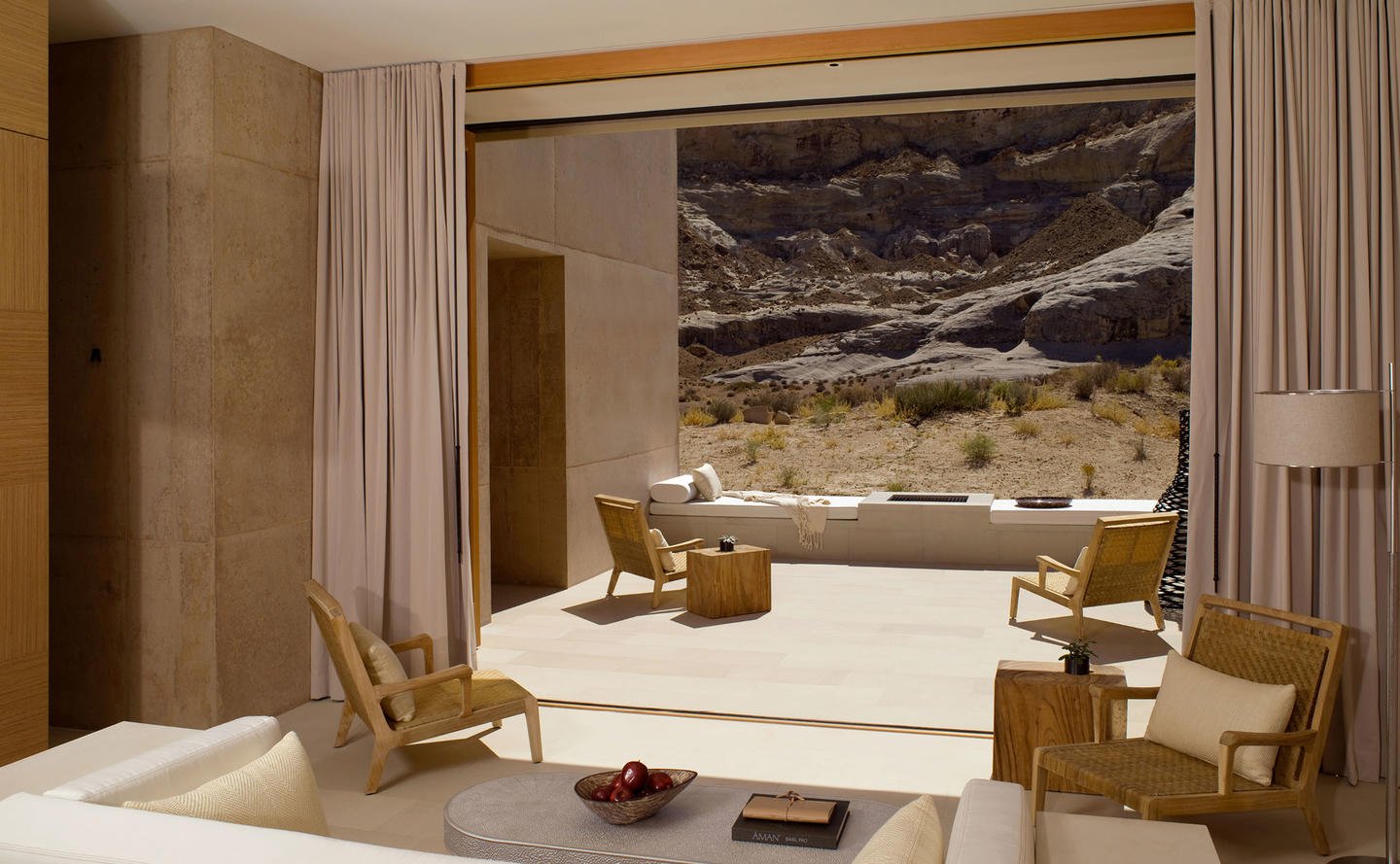 Die Amangiri Suite verfügt über einen 72 qm großen Privatpool, eine große Terrasse mit Feuerstelle, eine Dachterrasse mit Daybed, einen privaten Eingang, einen geräumigen Wohnbereich, ein Ankleidezimmer und ein großes Badezimmer.