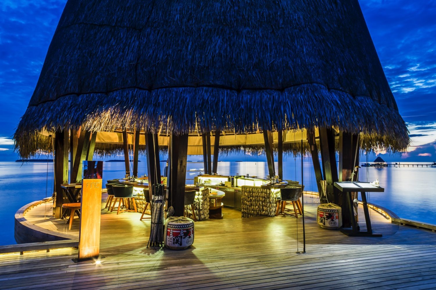 In 6 Restaurants und Bars werden die Gäste nach dem Sea.Fire.Salt.Sky-Konzept auf hohem Niveau mit Spezialitäten aus aller Welt verwöhnt. Das absolute Highlight ist das Unterwasser-Restaurant Sea mit Gourmet-Menüs und edelster Weinbegleitung. Fire hat Teppanyaki-Gerichte und asiatische Küche auf der Karte. Salt steht für innovative Fusion-Gerichte, die auf einem himalaiischen Salzblock serviert werden (Reservierungen im Voraus empfehlenswert). Das Hauptrestaurant Plates ist auf internationale Gerichte am Strand spezialisiert. Im Poolrestaurant Manzaru werden kleine Gerichte und mediterrraners Essen angeboten, und in der Rooftop-Bar Sky lassen sich in schönstem Sundowner-Ambiente frische Cocktails und andere Erfrischungen genießen.