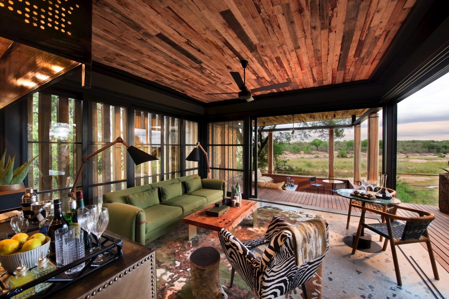 Die andBeyond Tengile River Lodge liegt am Flussbett des Sand Rivers im Sabi Sand Game Reserve, einer der besten Tierbeobachtungsdestinationen der Welt. Das Reservat ist durch eine 50 km lange, offene Grenze mit dem Kruger National Park verbunden und garantiert nicht nur eine sensationelle Tiervielfalt inklusive Big Five, sondern auch ein exklusives Buscherlebnis. Dafür sorgen strengste Besucherlimits in dem stolze 10500 Hektar großen Reservat. Auch die Lodge selbst zählt zu den Stars der südafrikanischen Safari-Welt, denn das Setting dieser Lodge ist schlichtweg unvergleichlich: Die 9 äußerst geräumigen Suiten liegen malerisch von Bäumen beschattet am Flussufer. Von jeder Veranda und jedem Privatpool eröffnet sich ein atemberaubender Ausblick in die Wildnis. Zusätzlich bietet der Gästebereich ein grandioses Ensemble aus Orten der Kontemplation und Begegnung, für die Möbel, Beleuchtung und Textilien eigens von lokalen Künstlern angefertigt wurden. Dazu gehören ein wunderschönes Restaurant, ein großartiges Aussichtsdeck und eine Bibliothek mit kuratierten Objekten und handverlesenen literarischen Delikatessen. Eine kleine Wellness-Oase mit Massagepavillon, Fitness und Pool bietet nach den Ausflügen Raum für Erholung und Entspannung. Das Beste daran: Dieses kleine Paradies bietet jedem Gast zweimal am Tag eine breite Auswahl an Unternehmungen – von Safaris in der Dämmerung, Buschwanderungen, Vogelbeobachtungen und Fotografie-Lehrgängen bis hin zur Sternenkunde. Zu sehen gibt es neben den berühmten Big Five, Nashörner, Geparden, insgesamt 145 Säugetier-Arten, 500 Vogelarten, 110 Reptilienspezies, 45 Fischarten und eine Unzahl an botanischen Delikatessen. Die andBeyond Tengile River Lodge genießt exklusive Wegerechte für 10500 Hektar Wildnis, d.h. Gäste können das Reservat zu Fuß erobern, befreit von Hemmnissen durch Straßen- oder Gegenverkehr sogar nachts offpiste auf Entdeckungstour gehen. Das alles natürlich sehr achtsam, denn wie alle andBeyond Destinationen bekennt sich die Lodge zu nachhaltigem Management sowie sanftem Tourismus und hat die Anlage sowie alle Prozesse auf Umweltgerechtigkeit getrimmt. Die Lodge arbeitet komplett autark, das aus der Umgebung stammende Wasser wird vor Ort gefiltert und der Strom aus Solarenergie bezogen. Flankierend fördert die Lodge diverse Community Projekte wie Gemüseanbau, Schulbau und Beschäftigung der lokalen Bevölkerung. Bei der Errichtung wurde sehr darauf geachtet, den ökologischen Fußabdruck so gering wie möglich zu halten. Aus diesem Grund wurden hauptsächlich umweltfreundliche und langlebige Materialien verarbeitet.
