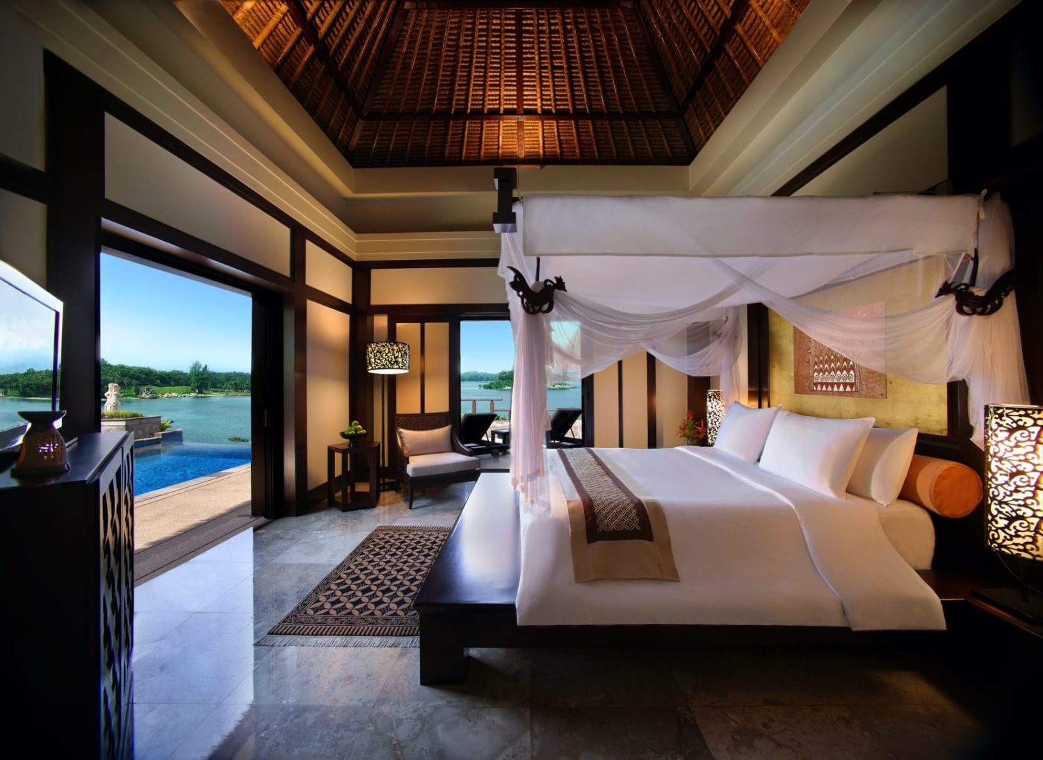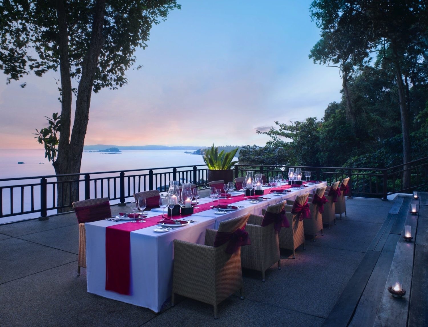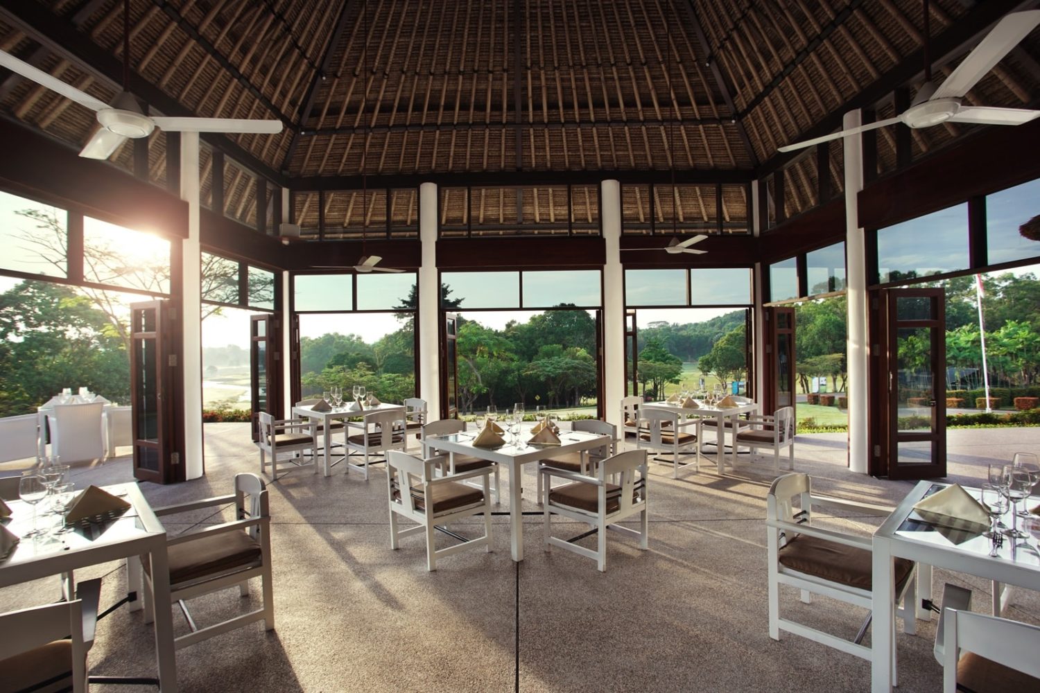 Nur eine kurze Fährpassage von Singapur entfernt verspricht dieses auf der indonesischen Insel Bintan gelegene Luxusresort eine rundum erholsame Pause vom Großstadtrummel. Das 2013 aufwändig renovierte Hotel wurde oberhalb einer geschützten Bucht auf Pfählen am Rande des Regenwaldes direkt an einem ausgedehnten weißsandigen Privatstrand errichtet und verfügt über einen eigenen 18-Loch-Golfplatz.