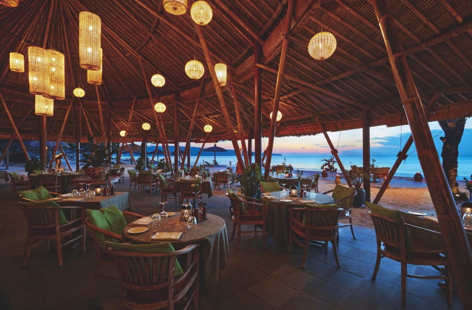 Gästen stehen zwei exquisite Restaurants und eine Bar zur Verfügung. Das Frühstück wird im legeren Tujung serviert, wo man abends bei Kerzenlicht und Blick auf den Teich des Resorts und die dahinter liegende Bucht asiatische Spezialitäten genießt. Das Nelayan bietet internationaler Küche und Seafood-Spezialitäten, die u.a. an Tischen direkt am Strand serviert werden. Die direkt am Strand gelegene Puri Bar bietet ganztags erfrischende Getränke und leichte Gerichte. Auch In Room-Dining ist auf Anfrage jederzeit möglich.