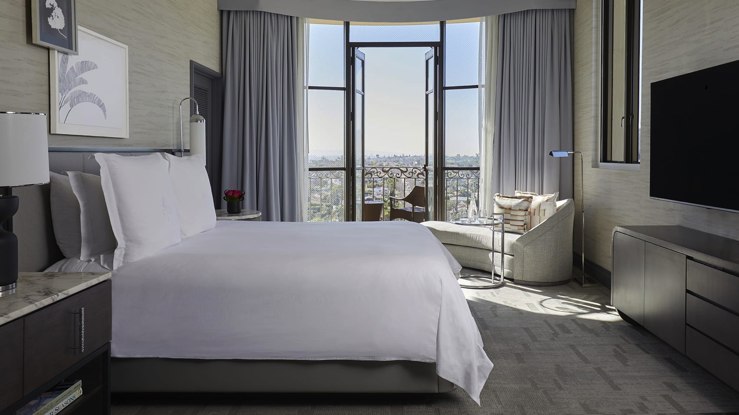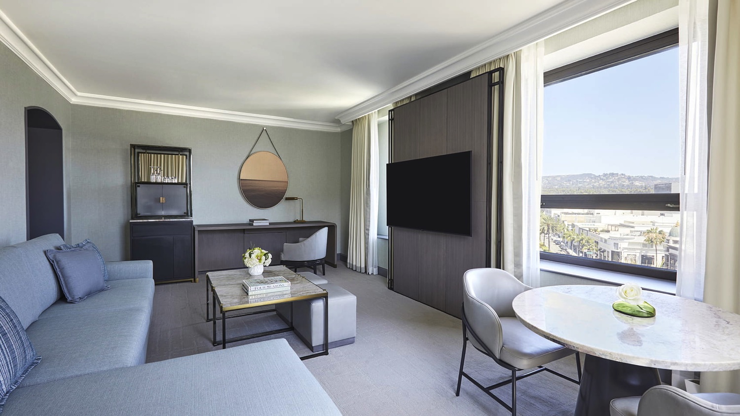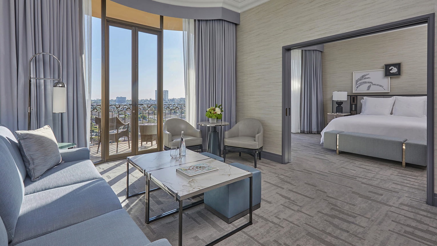 Diese extragroßen Suiten bieten einen Panoramablick auf den berühmten Rodeo Drive und verfügen über ein separates Wohnzimmer und ein Hauptschlafzimmer mit einem eigenen Ankleidebereich. Zusätzlich stehen den Gästen ein Schreibtisch und ein großzügiges Marmorbad mit Schminktisch zur Verfügung.