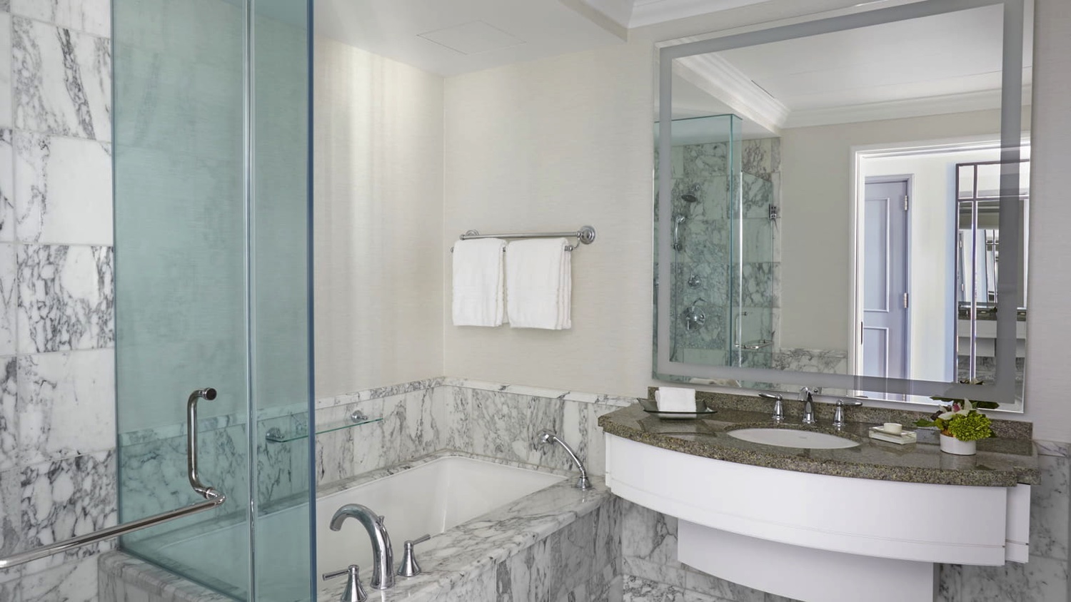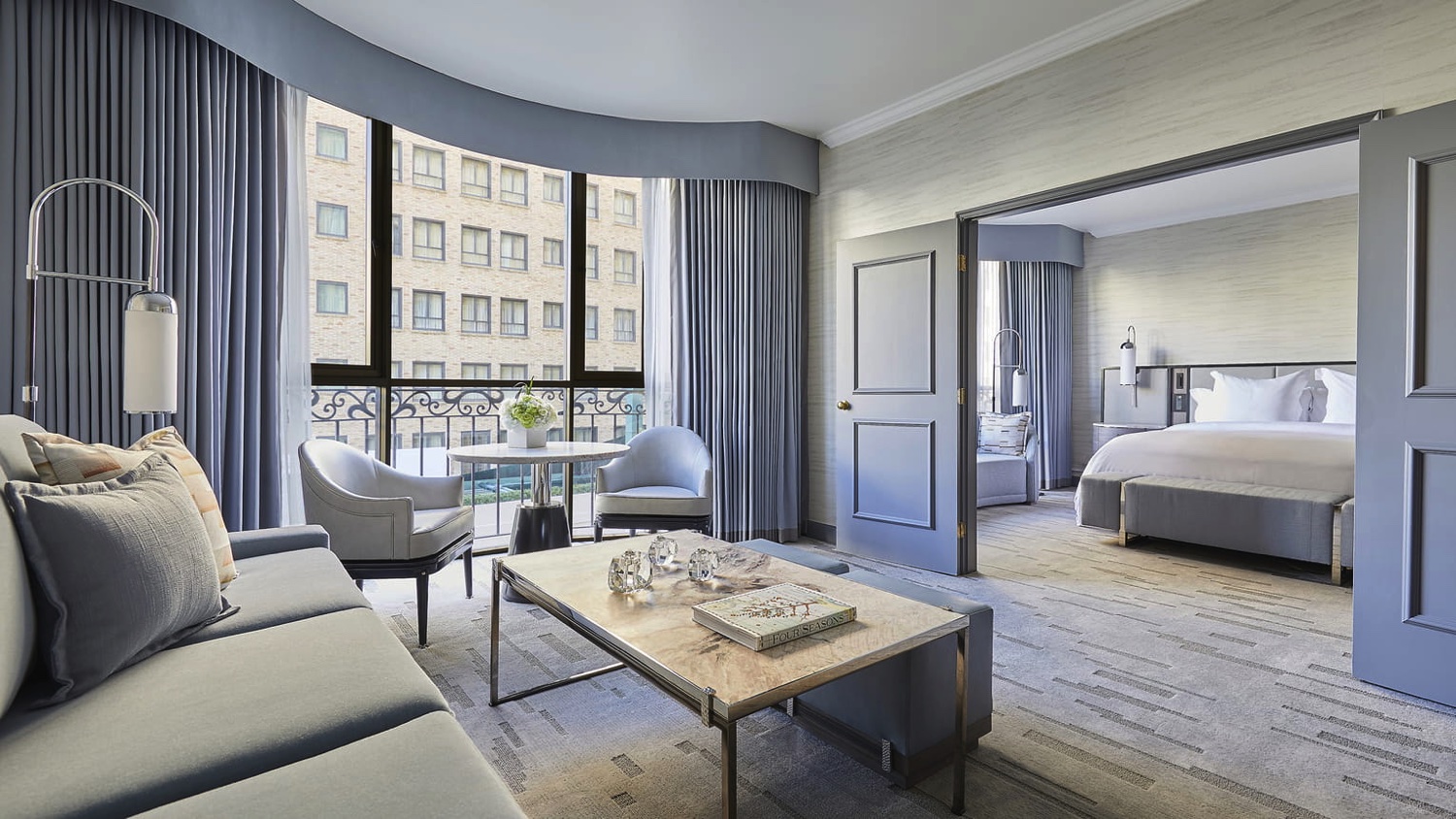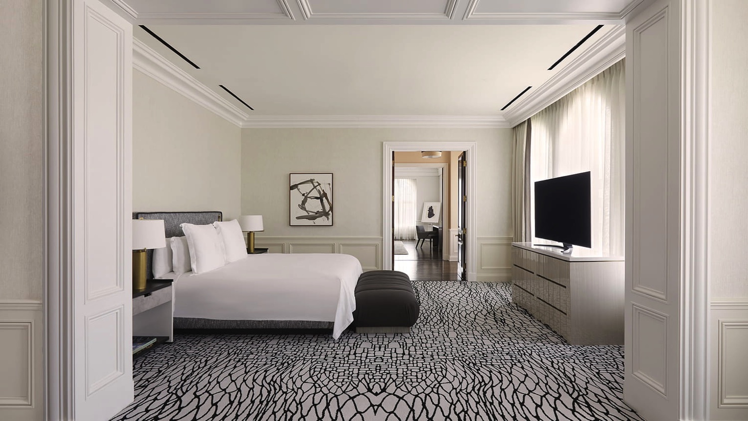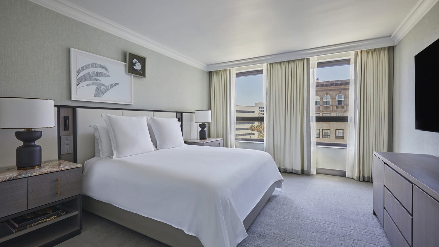 Diese extragroßen Suiten bieten einen Panoramablick auf den berühmten Rodeo Drive und verfügen über ein separates Wohnzimmer und ein Hauptschlafzimmer mit einem eigenen Ankleidebereich. Zusätzlich stehen den Gästen ein Schreibtisch und ein großzügiges Marmorbad mit Schminktisch zur Verfügung.