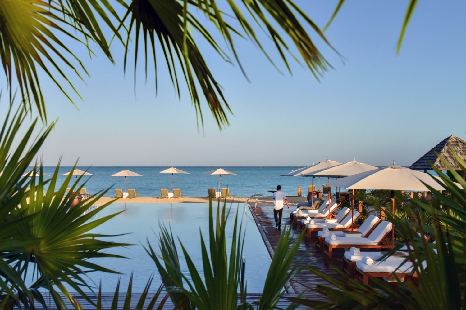 Das Resort liegt direkt am 5 km langen feinen Sandstrand (Privatstrand mit Liegen und Sonnenschirmen). Ein 465 qm großer Infinity-Swimmingpool (beheizbar) befindet sich unmittelbar vor dem Strand (mit Beach Bar).