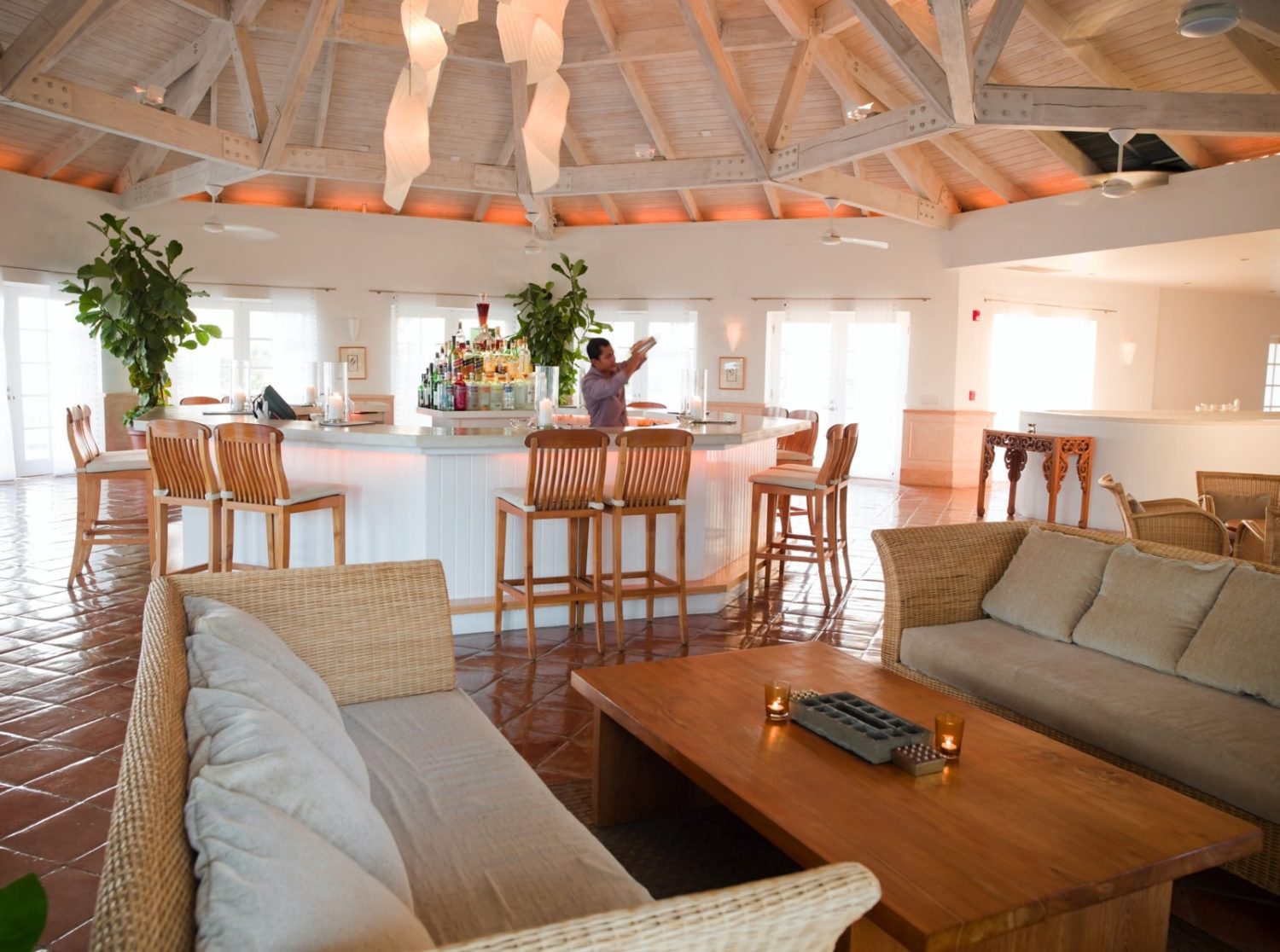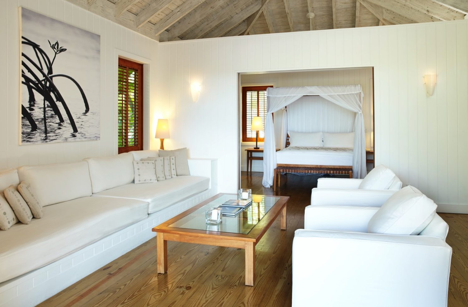 Das Konzept und die Architektur des Hotels sind asiatisch beeinflusst, von dessen entspannter Spiritualität auch die Unterkünfte geprägt sind. Die insgesamt 59 großzügigen, sehr stilvoll mit balinesischen Möbeln und allem Komfort ausgestatteten Zimmer verfügen standardmäßig über Kingsize-Betten mit weißen Vorhängen, Klimaanlage, Deckenventilator, W-LAN, Telefon, TV, DVD, Radio, CD-Player, Minibar, Kaffeekocher, Safe sowie Balkon oder Terrasse sowie ein geräumiges Bad mit separater Dusche, WC, Bidet, Bademänteln und Föhn. Im Hauptgebäude in leichter Hanglage sind die Terrace Rooms (ca. 57 qm) im Erdgeschoss mit Himmelbett und Gartenblick, Upper Terrace Rooms (ca. 57 qm) im 1. Stock mit Balkon und Blick auf Garten und Meer (Sicht teilweise durch die Vegetation eingeschränkt), Como Suiten (ca. 120 qm) mit separatem Wohn-/Essbereich sowie einem großen Balkon mit Tagesbett und Blick in den Garten, 3 Minuten vom Strand entfernt, One Bedroom Beach Houses (ca. 101 qm), halb frei stehende Strandhäuser 30 m vom Strand entfernt und eigenem Strandzugang, mit Himmelbett, einem schönen separaten Wohn- und Essbereich und offenem Bad, Gästebad, Küche und eine Veranda mit beheiztem Punge-Pool, One Bedroom Beach Villen (ca. 135 qm) wie One-Bedroom Beach Houses, aber frei stehend mit direktem Meerblick und Kitchenette statt Küche. Two Bedroom Beach Houses (ca. 97 qm) in den Dünen mit uneingeschränktem Meerblick, 2 Ensuite-Schlafzimmern, großzügigem separaten Wohn/Esszimmer, großer Veranda mit privatem Pool und Butler-Service, Two Bedroom Villen (ca. 266 qm) frei stehend mit direktem Strandzugang, zwei großen Master Schlafzimmern inklusive Himmelbett, privaten Patio, und Ensuite-Bad, einem weiteren Einzelzimmer mit Ensuite-Bad, Küche großem Wohn/Esszimmer, das direkt auf die Veranda mit beheiztem Swimming Pool, und Outdoor Ess-Pavillon führt, und Butler-Service, COMO Villen (ca. 315 qm) frei stehend mit Meerblick, zwei großen Master Schlafzimmer inklusive Himmelbett, Ensuite-Bad mit Outdoor Dusch-Garten und einem dritten Schlafzimmer, großem Wohn/Esszimmer und möbliertem Sundeck mit Esstisch und beheiztem Swimmingpool sowie Butler-Service, Three Bedroom Island Villen mit 1,5 ha Privatgelände und direktem Strandzugang, 3 Schlafzimmern mit Ensuite-Bad, großem In- und Outdoor Infinity Pool, Küche und Herrenzimmer, im Privatbesitz befindliche Rocky Point Villen am Strand von Rocky Point, mit gigantisch viel Platz, 3 Schlafzimmern mit Ensuite-Bad, Wohn- sowie Esszimmer, großem Sundeck mit Privat-Pool und Outdoor-Essbereich, Wi-Fi und Butlerservice, The Residence mit 5 Schlafzimmern mit Ensuite-Bad und zwei Gästevillen mit je 3 Schlafzimmern, 7 Minuten mit dem Buggy vom Resort entfernt bietet das Haupthaus einen großen Wohnbereich, ein riesiges Sundeck mit großem Pool und direktem Strandzugang. Mit ultimativer Privatsphäre ideal für Hochzeitgesellschaften, The Sanctuary in verschwenderischem karibischen Luxus – im Privatbesitz von Donna Karan – mit 3-Bedroom Haupthaus und zwei 4-Bedroom Gästehäusern. Alle Schlafzimmer verfügen über Ensuite-Badezimmer, Outdoor-Duschen und Jacuzzis. Zum Komplex gehören 4 Pools, Tamarind mit wahlweise 2 oder 3 Schlafzimmern, privatem Pool, 24-Stunden Butlerservice, privatem Fitness-Studio und einem vollausgestatteten Büro, The Island Villen mit 1,5 ha privatem Gelände, 3 Schlafzimmern, Küche, Herrenzimmer sowie einem gigantischen Wohn- und Outdoor-Bereich sowie privatem Infinity Pool. Der 24-Stunden Butler ist auch für das kochen zuständig.