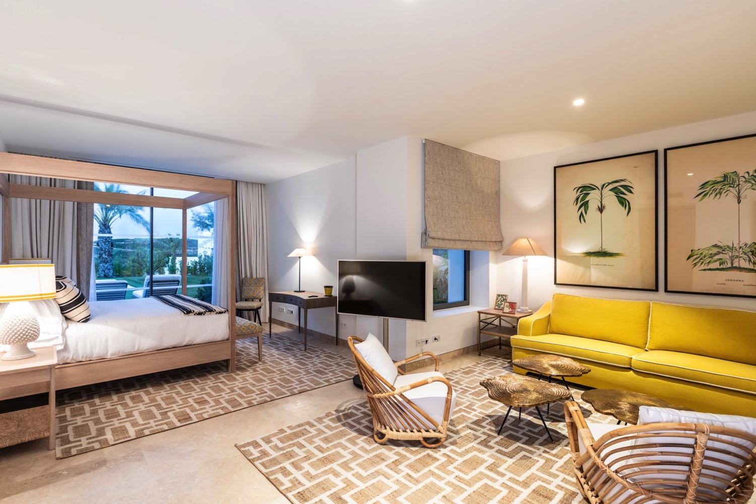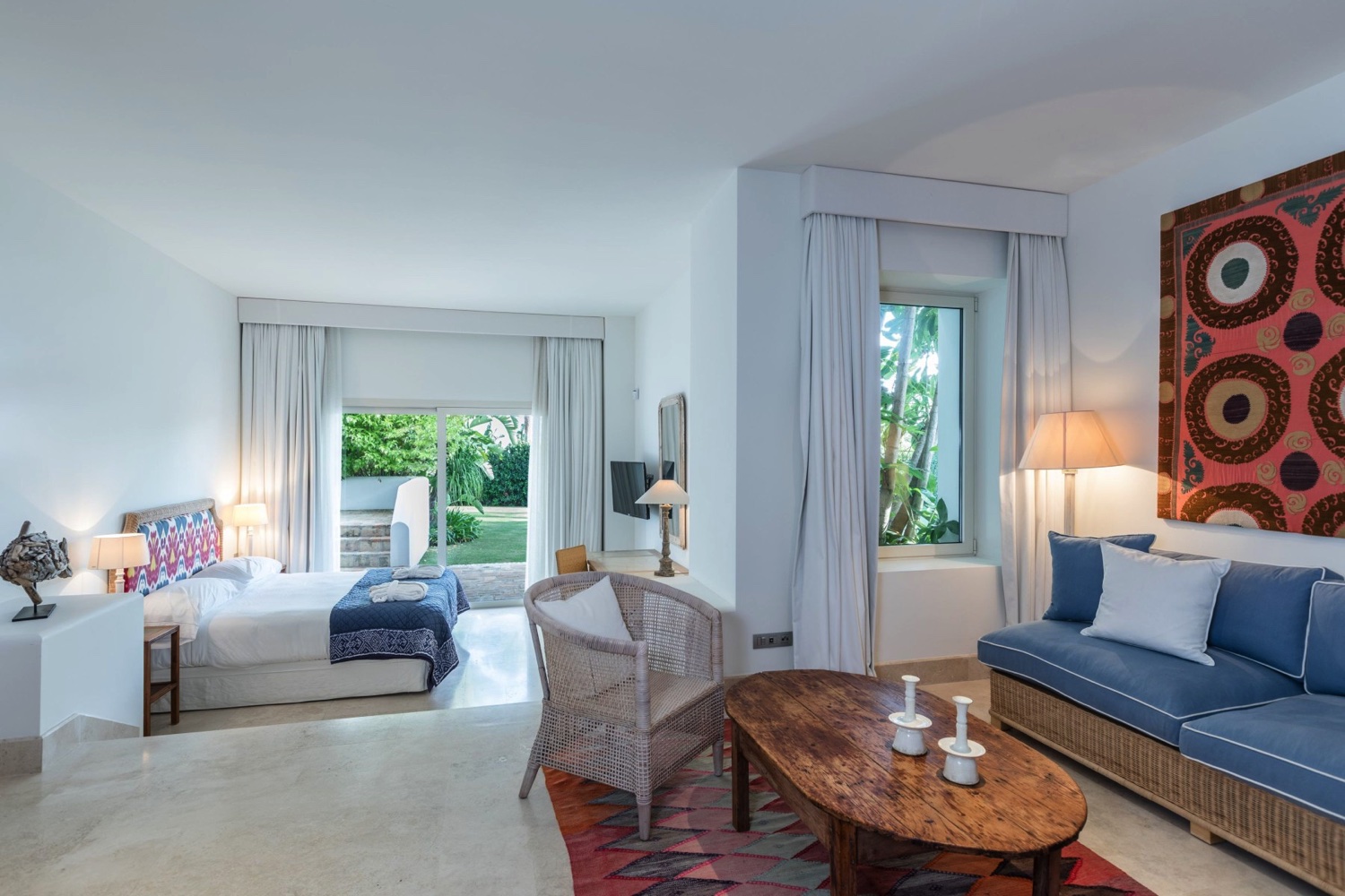 Die 62 Suiten sind alle großzügig geschnitten, verfügen über 4-Meter hohe Decken und sind in hellen Farben und landestypischen Details eingerichtet. Sie verfügen über LCD-TV, Zimmersafe und WLAN. Die Badezimmer sind mit italienischem Travertinmarmor ausgestattet und verfügen über übergroße Badewannen, begehbare Regenduschen, zwei Waschtische und ein separates WC. Die meisten Suiten verfügen außerdem über einen eigenen Garten, einen Balkon oder eine Terrasse. Das á la carte Frühstück im Restaurant El Jardín de Lutz, ein kostenloser Parkservice und kostenloser Eintritt und Shuttle-Service zum Beach Club sind inbegriffen. Gäste der Villen erhalten zusätzlich kostenlosen Transfer zum Flughafen (bei min. 7 Übernachtungen), täglich zwei Stunden Kinderbetreuung für zwei Kinder, zweimal täglich Reinigungsservice sowie weitere Extras.