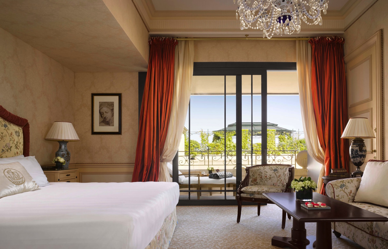 Die 125 klassisch und zeitlos eingerichteten Zimmer und Suiten sind auf sieben Etagen verteilt und wurden von Designer Jacques Garcia gestaltet. Sie bieten Klimaanlage, private Bar, In-Room-Dining, King-, Queen-Size- oder Twin-Betten, Kissen-Menü, Badewanne, Haartrockner, Telefon, WLAN, Pressreader, Flachbildschirm-Fernseher, 116 TV-Kanäle in 13 verschiedenen Sprachen und VOD-System. Den Gästen der Prestige Junior Suite oder Suiten steht zusätzlich ein kostenloser Berluti-Schuhputzservice zur Verfügung.