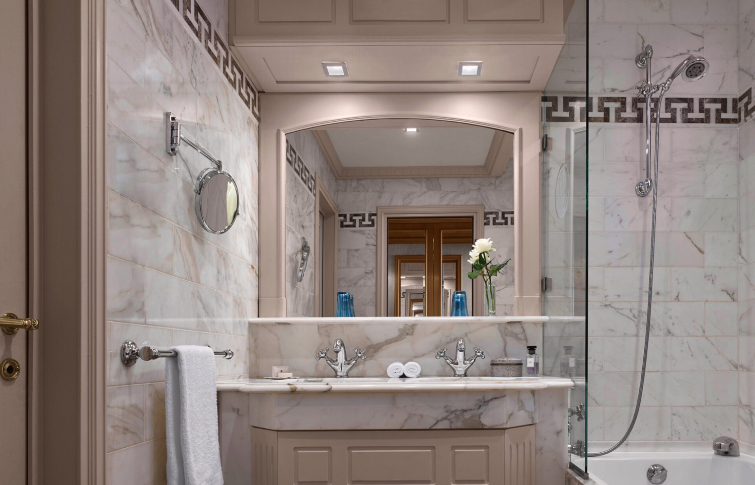 Die Superior Junior Suiten verfügen über ein Schlafzimmer mit Kingsize-Bett, das durch Schiebetüren vom separaten Wohnbereich abgeteilt werden kann. Das Marmorbad ist mit einer Badewanne ausgestattet. Sie können mit einem Superior Room verbunden werden.