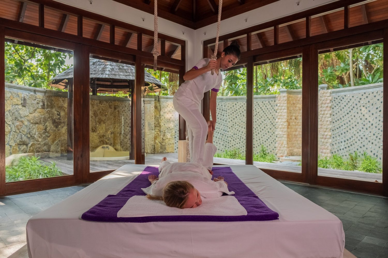 Die professionellen Therapeuten im Calm Spa passen alle Behandlungen und Programme an Ihre individuellen Bedürfnisse an und jede der neun privaten Behandlungsräume verfügt über eine Open-Air Regendusche und Badewanne. Außerdem haben Sie die Möglichkeit, ein beruhigendes Spa Hydrotheraphie-Bad zu nehmen oder in der Sauna die Seele baumeln zu lassen. Das Calm Spa mit Elemis Produkten ist für jeden Inselbesucher ein Muss bei der atemberaubenden Inselrundfahrt.