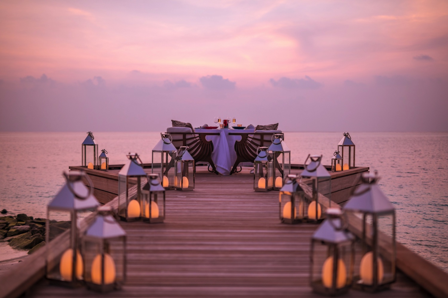 Private Dining – Wer besondere Anlässe feiern möchte, kann ein romantisches Abendessen in privater Atmosphäre auf dem Sunset Pier genießen.