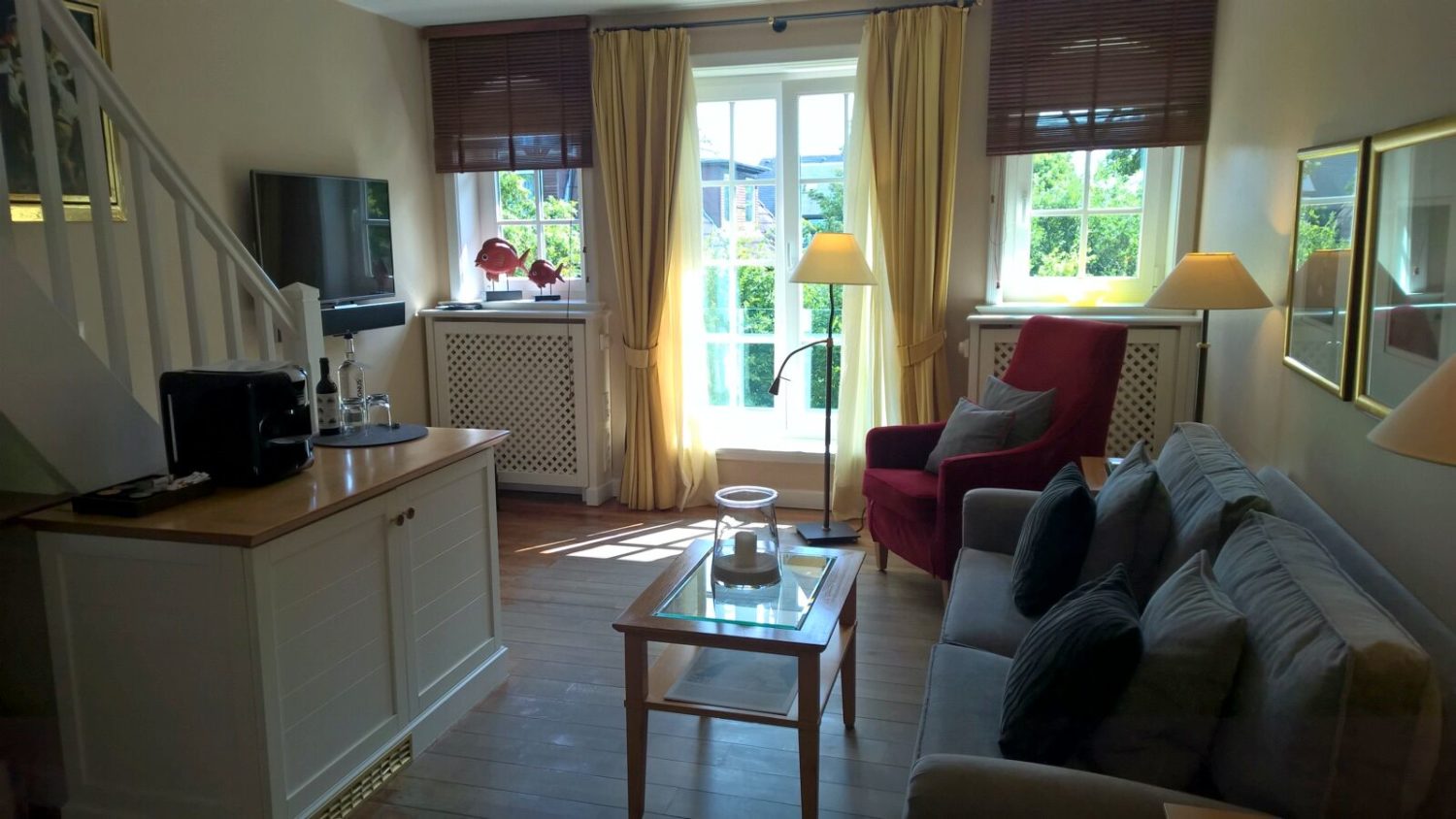 Das bestens ausgestattete Gym im Landhaus Stricker ist wie alles außergewöhnlich und erinnert an einen Box-Club. Hier können Gäste an TechnoGym-Geräten und einem Sandsack trainieren oder alternativ draußen joggen. Gegen Gebühr sind Tennis, Fahrrad fahren, Reiten und diverse Wassersportarten durch externe Anbieter möglich. Außerdem befinden sich vier lohnenswerte 18-Loch-Golfplätze im Umkreis.