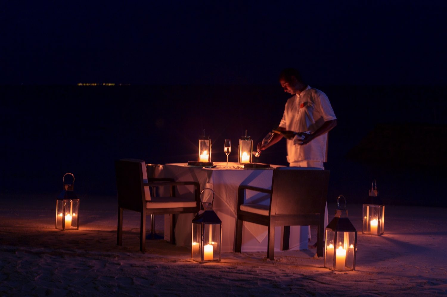 Eher sehr unaufmerksam, wir mussten mehrmals ersuchen, unsere Gläser nachzufüllen….. Das Essen war jedoch ausgezeichnet! Danach wollten wir noch an der Beach-Bar im Freien einen Drink nehmen. Das war leider mit Hinweis auf bereits reservierte Tische nicht möglich, obwohl an keinem der Tische ein Reserved Schild zu sehen war. Wir haben uns daraufhin an den Strand gesetzt, was etwas ungemütlich war, weil es bereits zu kühl war. Immerhin brachte man uns dann – nach mehrmaligem Zuruf (!) endlich auch hier etwas zu trinken! Von dort aus konnten wir beobachten, dass lediglich ein einziger Tisch besetzt wurde und alle anderen frei blieben. Das war natürlich schon ärgerlich, denn so etwas sollte in einem der besten Hotels der Welt nicht passieren und haben uns dann doch bei einem der „Manager“ beschwert, der sich dann etwas unbeholfen entschuldigt hat.