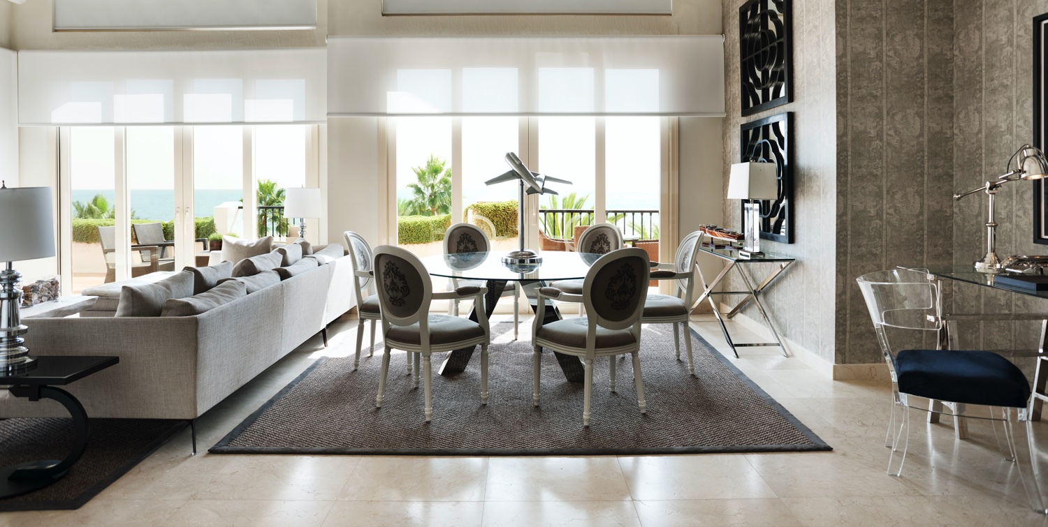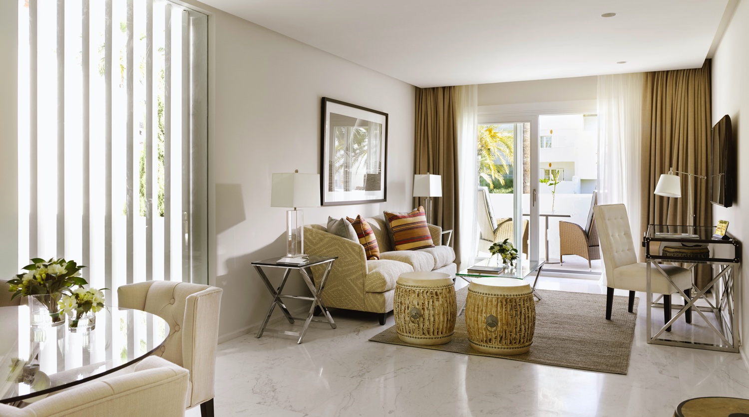 Die 185 Suiten verteilen sich auf 27 dreistöckige Villen, die sich großzügig über die üppig blühende Gartenanlage verteilen, darunter auch 3 private Villen. Hell und luftig im Kolonialstil mit mediterranen Akzenten eingerichtet sorgen sie für Privatsphäre und ein Gefühl von sommerlicher Unbeschwertheit. Zur Standardausstattung zählen Klimaanlage, Kingsizebetten, Sat-TV, Nexus Tablet, Illy Kaffeemaschine, Telefon, WLAN (kostenfrei), Safe, Minibar sowie ein Marmorbad mit Dusche und separater Badewanne, Bademantel, Föhn und ein Balkon/Terrasse. Zur Auswahl stehen folgende Kategorien: Junior Suite (ca. 55 qm) mit großem, kombinierten Wohn-/Schlafbereich, großzügigem Bad mit Doppelwaschbecken und Terrasse mit Gartenblick, die größere Deluxe Junior Suite (60 qm) mit besonders schönem Bad inklusive separater Dusche und Badewanne, sonst wie Junior Suite, Deluxe Garden Junior Suite (65 qm) mit großem Bad inklusive zwei Waschbecken, Whirlwanne und Regendusche und Terrasse mit Gartenblick, Deluxe Two Bedroom Junior Suite (100 qm) wie Deluxe Garden nur mit zwei Schlafzimmern, zwei Bädern, davon eines mit Regendusche oder Badewanne, Grand Junior Suite (70 qm) mit großem Bad inklusive zwei Waschbecken, Whirlwanne und Regendusche und Terrasse mit teilweisem Meerblick, Interconnected Suiten für Familien mit den Kombinationen Junior Suite/Garden Suite, Junior Suite/Grand Junior Suite, Deluxe Junior Suite/Deluxe Garden Suite und Deluxe Junior Suite Beach/Grand Junior Suite Beach, Al Andalus Garden Suite (105 qm) mit separatem Wohnzimmer, Gäste-WC, großem Bad mit Fußbodenheizung, Whirlwanne und Doppelwaschbecken sowie zwei Terrassen, Mediterranean Suite Two Bedroom (125 qm) am Strand gelegen, mit zwei Schlafzimmern, zwei Bädern (jeweils mit separater Dusche/Badewanne, Doppelwaschbecken) und großer Terrasse, Royal Beach Suite (140 qm) mit separatem Wohnzimmer, Bad mit Jacuzzi und Sauna sowie einer Terrasse mit Outdoor-Jacuzzi und traumhaftem Meerblick, Grand Junior Suite with kitchen (100 qm) mit separatem Wohnbereich mit Kitchenette und Terrasse, Imperial Beach Suite (190 qm) wie Royal Beach Suite nur größer mit schönem Blick auf Meer und Bucht, Suite Villa (250 qm) mit vier Schlafzimmern inklusive Ensuite Bädern, großem Wohnzimmer mit Wohn- und Essbereich, voll ausgestatteter Küche und zwei Terrassen mit Blick auf die Anlage, The Beach Penthouse (315 qm), kombinierte Mediterranean und Imperial Suite mit drei Schlafzimmern, drei Badezimmern, Wohnzimmer und zwei Terrassen mit Meerblick, Villa Margerita (ca. 550 qm) im Herzen der Anlage in Strand- und Tenniscourt-Nähe mit 3 Schlafzimmern inklusive Ensuite Bädern, großem Wohnzimmer, voll ausgestatteter Küche, 400qm Privatgarten mit Pool und privater Dachterrasse mit Meerblick, Villa La Pereza (ca. 800 qm) mit vier Schlafzimmern inklusive Ensuite Bädern, großem Wohn- und Esszimmer, Küche und 800 qm Außenbereich mit privatem Pool und Strandzugang sowie die zweigeschossige Villa Armonia (450 qm) mit 5 Schlafzimmern inklusive Ensuite Bädern, amerikanischer Küche, großem Wohnzimmer, in das ein Teil des großen Privat-Pools integriert ist, sowie 280 qm Garten mit eigenem Zugang.