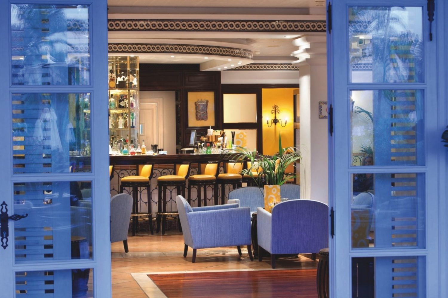 Das zweistöckige, mit viel Liebe zum Detail gestaltete Hotelgebäude verfügt über eine große Empfangshalle mit 24 h-Rezeption, ein hervorragendes Restaurant, eine Bar, Gesellschaftsräume, eine Bibliothek mit Internetterminals, gebührenfreies WLAN im gesamten Hotel, Boutique, Frisör und Kosmetikstudio sowie eine Tiefgarage.