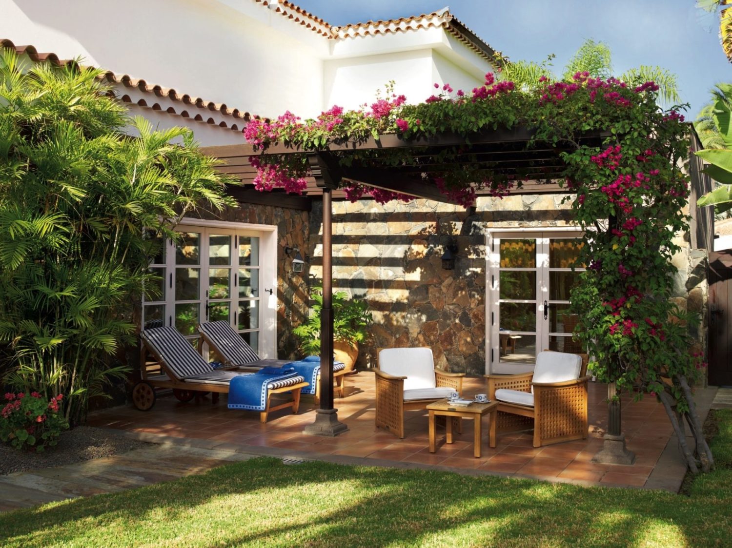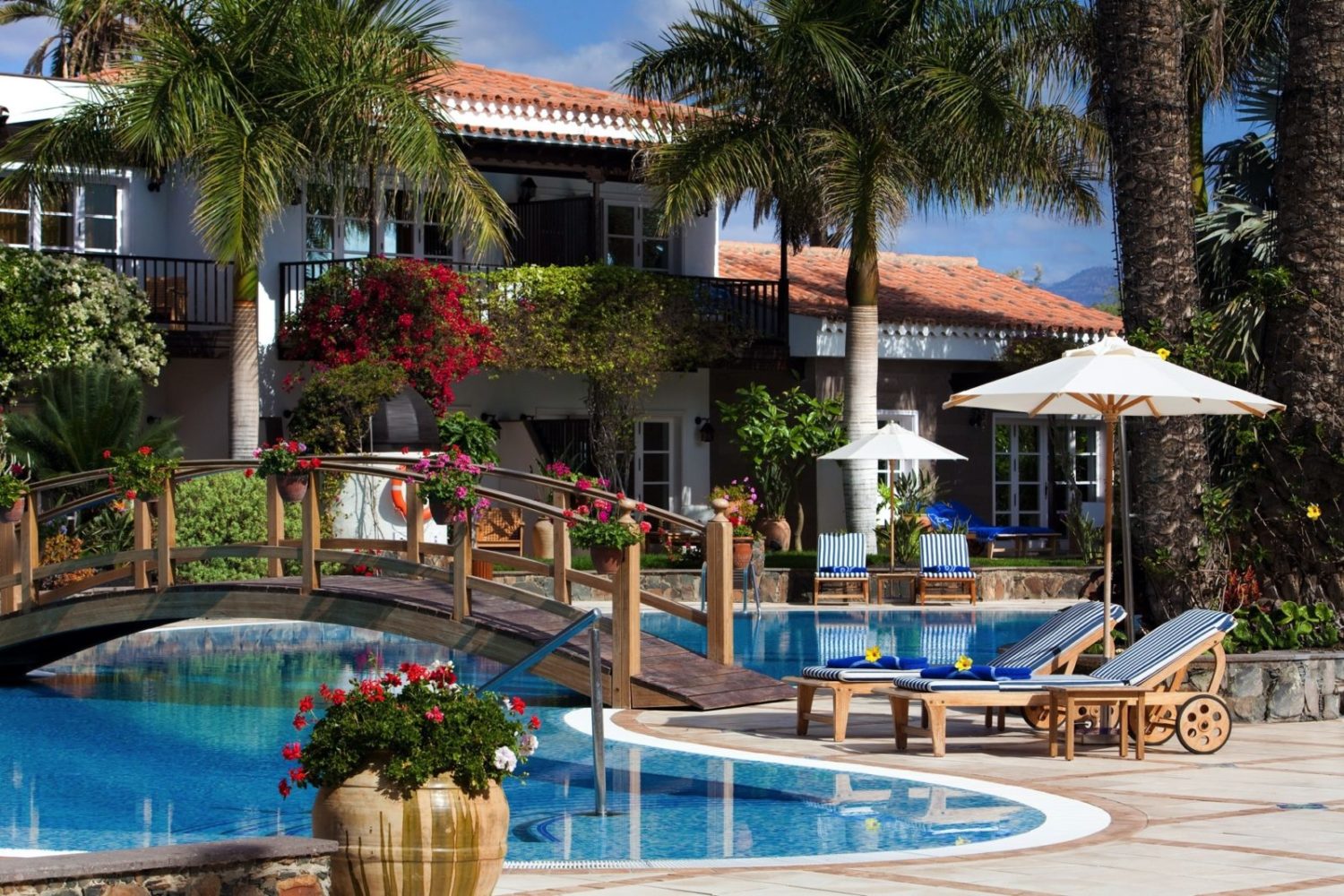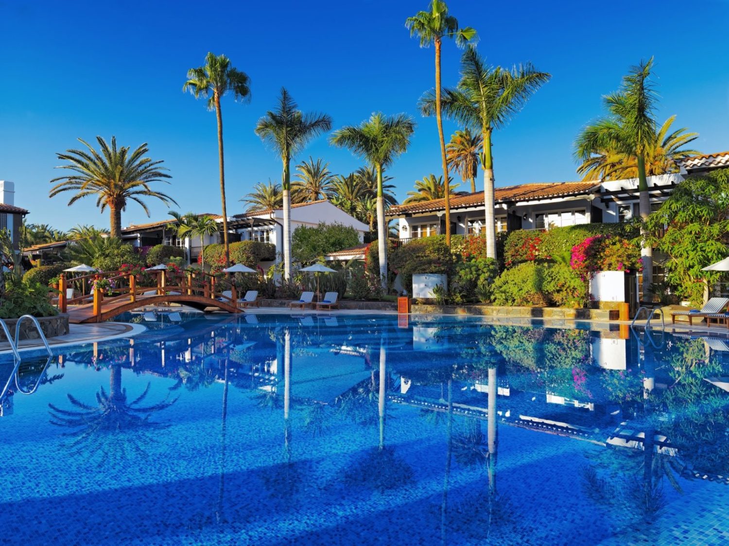Die im spanischen Kolonialstil erbaute zweistöckige Villenanlage liegt wunderschön eingebettet in einen üppigen subtropischen Garten in direkter Nachbarschaft zum Traum-Strand von Maspalomas mit seinen berühmten Dünen. Herzstück der Anlage ist der von einer weitläufigen Terrasse umgebene großzügige Süßwasserpool mit Mittagsrestaurant.
