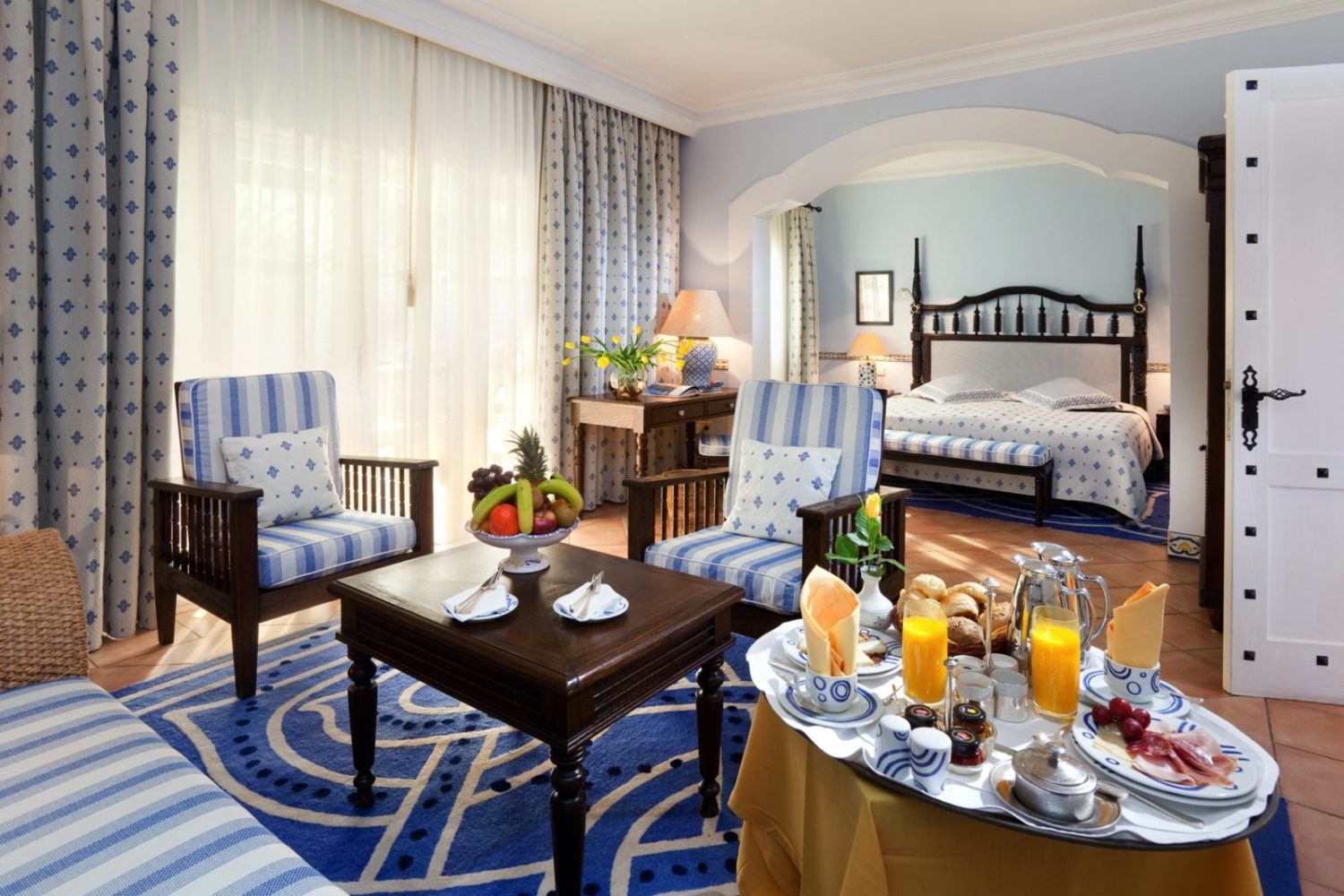 Das Hotel umfasst 94 elegante, im spanischen Kolonialstil eingerichtete Zimmer und Junior Suiten. Alle verfügen über einen möblierten Balkon oder Terrasse, Sat-TV, DVD-/CD-Player (kostenloser DVD-Verleih an der Rezeption), Telefon, Klimaanlage/Heizung, kostenloses WLAN, Minibar, Safe. Die Bäder sind mit Föhn, Bademantel und im Erdgeschoss mit Fußbodenheizung ausgestattet. Die Standardzimmer (33 qm) gehen entweder zur Landseite mit Garten, zur Dünen-/Garten- oder Poolseite mit entsprechendem Blick. Die Junior Suiten (55 qm) haben einen großzügigen Wohn-/Schlafraum mit Kaffee-/Espressomaschine sowie Bäder mit separater Dusche und Badewanne mit Massagedüsen. Weitere Kategorien, wie z.B. Mastersuite oder Präsidentensuite auf Anfrage.