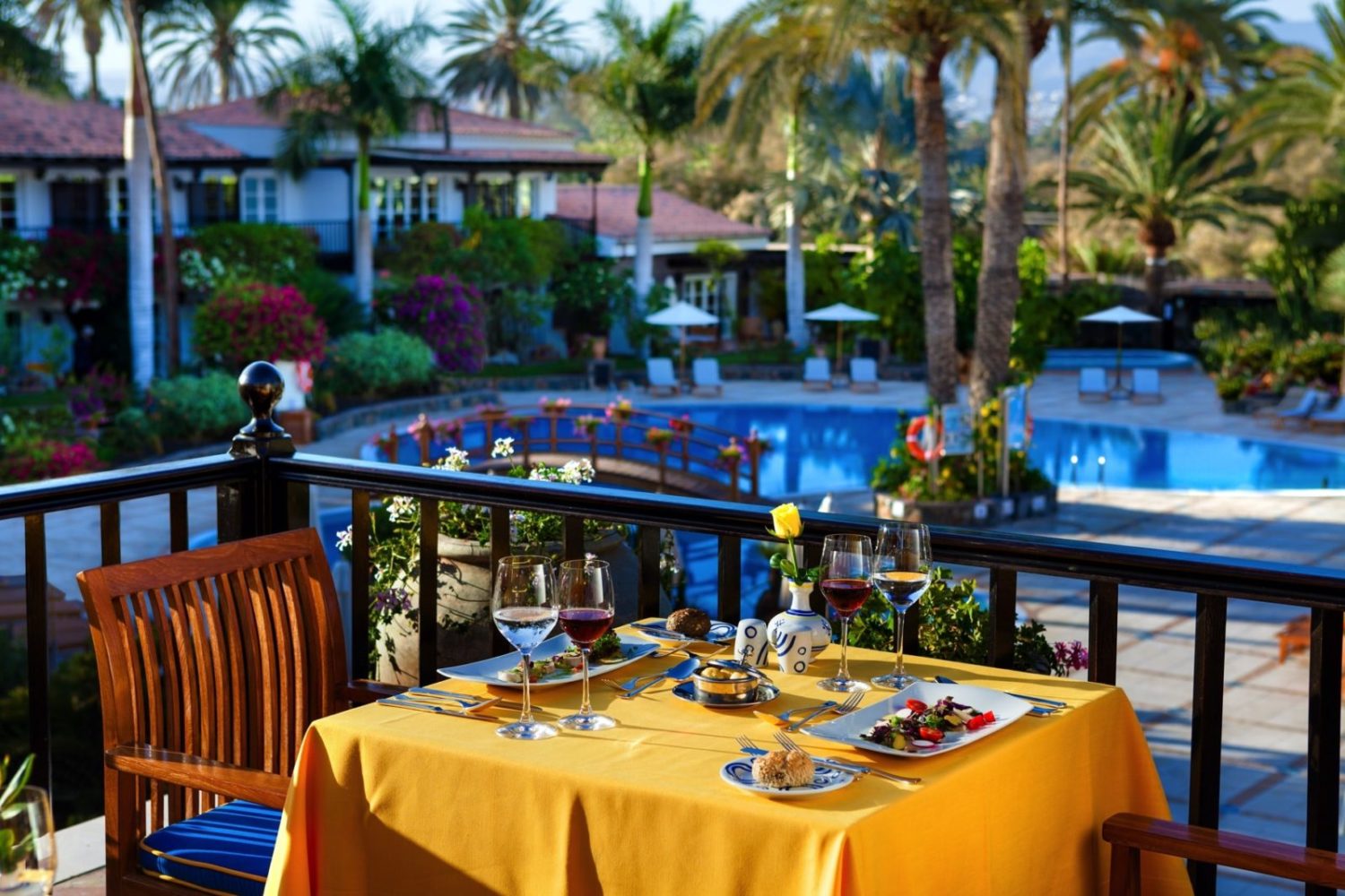Das elegante Restaurant mit schöner Terrasse und Blick auf die Berge und den Pool serviert authentische kanarische sowie internationalen Küche (abends formelle Kleidung erwünscht). Die Poolbar bietet zudem Erfrischungen, tropische Cocktails, mediterrane Speisen und kanarische Tapas zur Mittagszeit oder Kaffee, Tee, hausgemachtes Gebäck und Kuchen am Nachmittag. Auf der Terrasse der Pianobar können Gäste den Tag bei Live-Musik ausklingen lassen.
