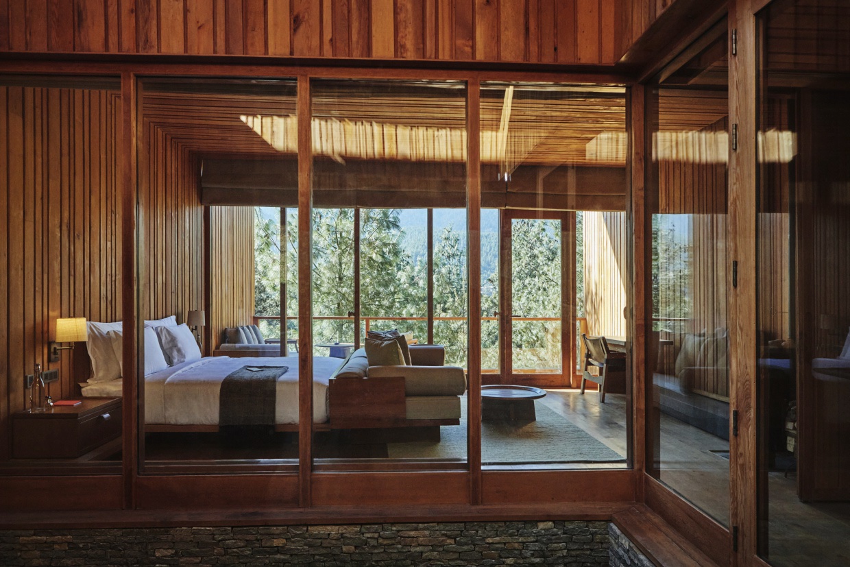Das Six Senses Bumthang zelebriert die tiefe Verbundenheit Bhutans mit der Natur. Die Lodge mit ihren acht Suiten und einer Villa liegt in einem Kiefernwald oberhalb eines sprudelnden Baches und fügt sich in die unberührte natürliche Schönheit seiner Umgebung ein. Der Wald ist hier das zentrale Thema und Sie müssen nicht einmal nach draußen gehen, um hier ein Waldbad zu nehmen, denn jede Suite ist um einen Innenhof herum gebaut, in dem ein eigener Baum gepflanzt ist.