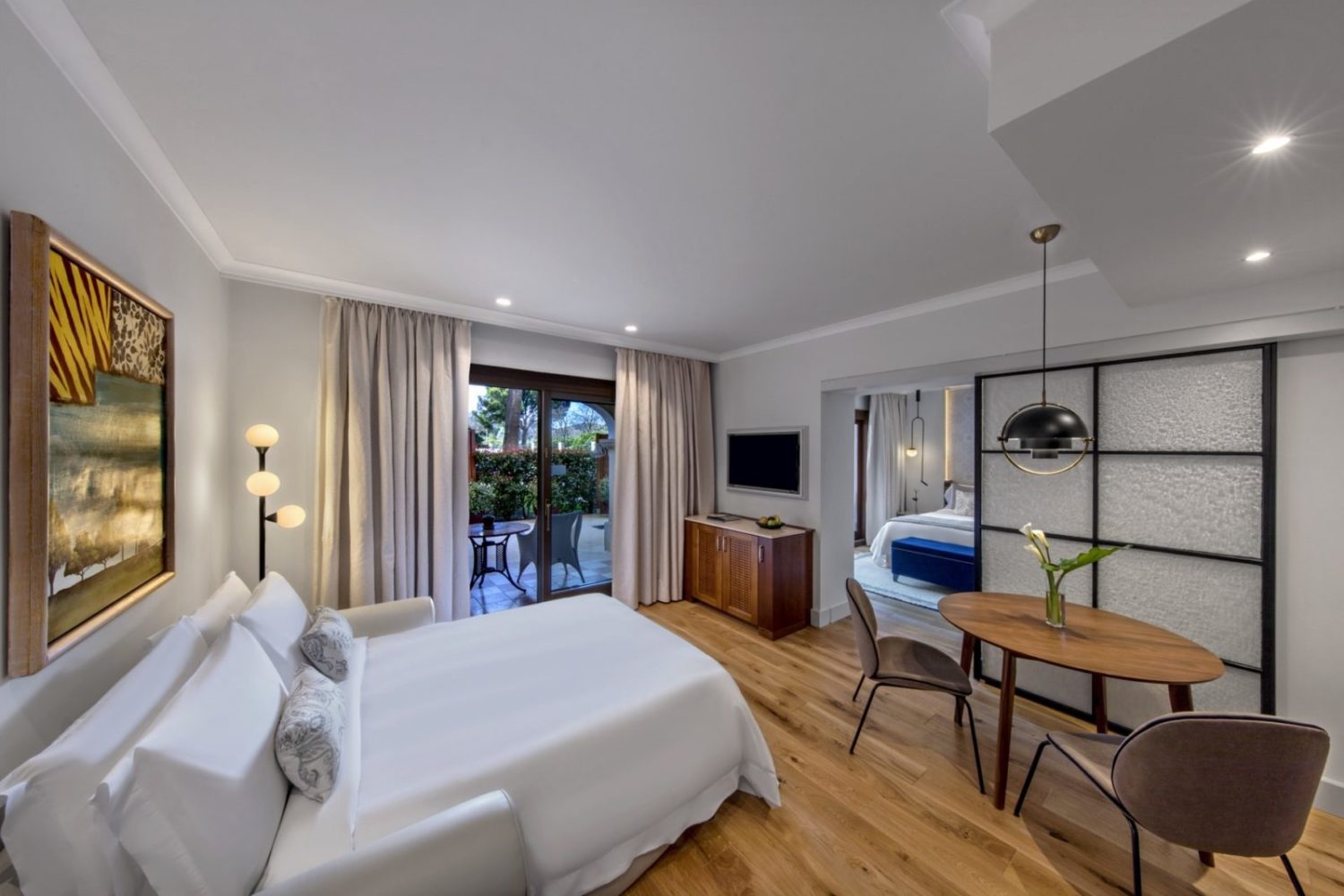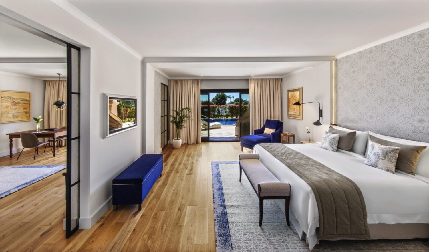 Insgesamt 133 elegant eingerichtete und luxuriös ausgestattete Zimmer im mediterranen Stil verfügen über großzügige Balkone oder einzigartige Terrassen mit dezenter Beleuchtung, die eine wunderbare Aussicht auf das Meer oder tropische Gärten ermöglichen. Die Grand Deluxe Zimmer mit ca. 48 qm verfügen über Bad (mit Bidet, TV, Föhn, Bademantel, Kimono, Fußbodenheizung), jeweils separate Dusche und Toilette, Satelliten-TV, DVD, CD-Player, Telefon, Internet-/Fax-/Modem-Anschluss, Safe, Minibar, Klimaanlage, Balkon und Gartenblick. Auch als Grand Deluxe Seaview Variante mit Meerblick buchbar. Die mit 55 qm etwas größere Junior Suite zeichnet sich durch ein Designer-Badezimmer, die Sitzecke und eine große Terrasse mit Liegen sowie Gartenblick aus. Auch in dieser Kategorie als Junior Suite Seaview mit Balkon und Meerblick buchbar.