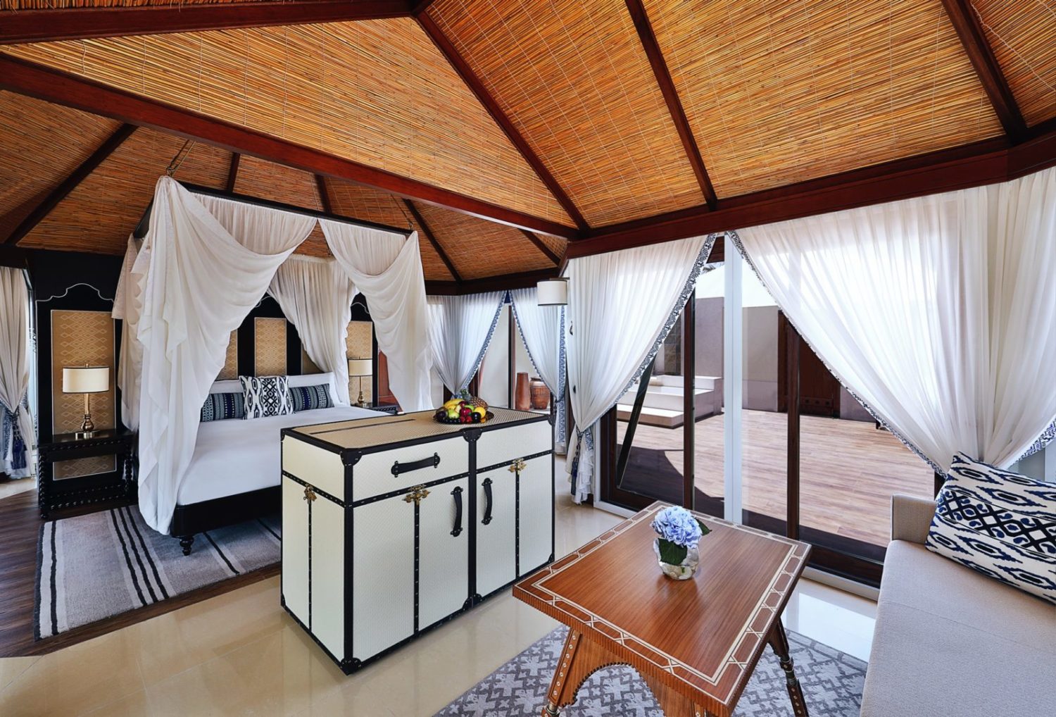 Die 32 exklusiven Pool-Villen im Resort bieten direkten Strand– und Meerzugang, sowie möbliertes Sonnendeck mit großer Badewanne, außen Dusche und privater Strand-Cabana. Ihre Einrichtung überzeugt durch eine gelungene Mischung aus traditionellen arabischen Elementen und modernem Wohnkomfort. Zur Ausstattung gehören eine Sitzecke, versenkbarer LCD-TV, Telefon, WLAN-Internetzugang ohne Gebühr, Kaffee & Tee Zubereiter, Klimaanlage, Bad mit separater Regendusche, Föhn, Bademäntel & Slipper.