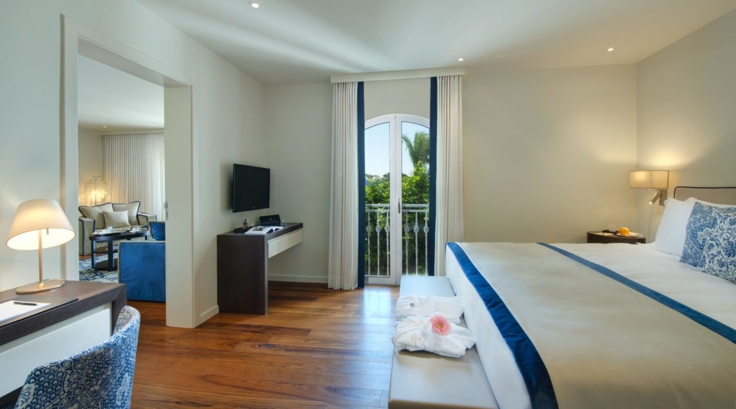 Das Resort verfügt insgesamt über 170 Zimmer und Suiten, die individuell auf höchstem Niveau eingerichtet sind und alle auf ihre Weise dezenten Luxus und Behaglichkeit ausstrahlen. Alle Unterkünfte sind klimatisiert und mit Kissenmenü, interaktivem Flatscreen TV-System, WiFi, Telefon, Minibar, Safe, Klimaanlage, Badezimmern mit Föhn und beheizten Handtuchhaltern sowie einer möblierten Panorama-Terrasse oder -Balkon ausgestattet.