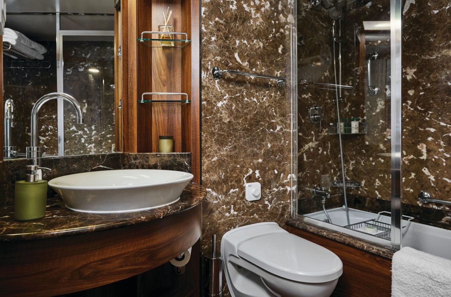 Nicht zuletzt die exzellente Gastronomie an Bord bietet einen hochgradig individualisierten Service: Die Restaurants auf Sterne-Niveau berücksichtigen auch die ausgefallensten Wünsche und servieren Menüs jederzeit Gang für Gang auf die Zimmer, von denen 85% eine private Veranda haben. Sämtliche Kabinen sind zudem in Form großzügiger Suiten angelegt, die in punkto individuellem Komforts nichts zu wünschen übrig lassen.